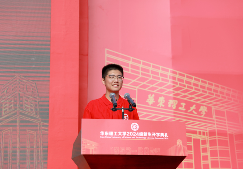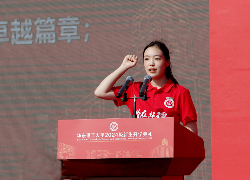 “我们是青春的光与热,融入教育强国的广阔画卷;我们是炽热的星与火,踏向民族复兴的伟大征程……”2024年“0001”号录取通知书获得者、化工学院2024级本科新生唐瑞琪,带领全体新生进行宣誓。